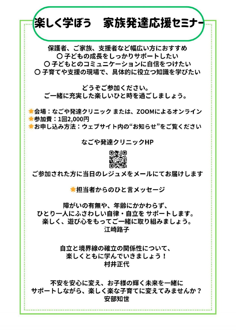 ご参加を希望される方は「なごや発達クリニックHP」よりお申込み下さい。